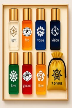 Discover the divine connection between fragrance and spirituality with the Divine 7 Chakra Perfume Set – a sacred collection of seven unique perfumes, each carefully crafted to resonate with one of the seven chakras: Root, Sacral, Solar Plexus, Heart, Throat, Third Eye, and Crown.